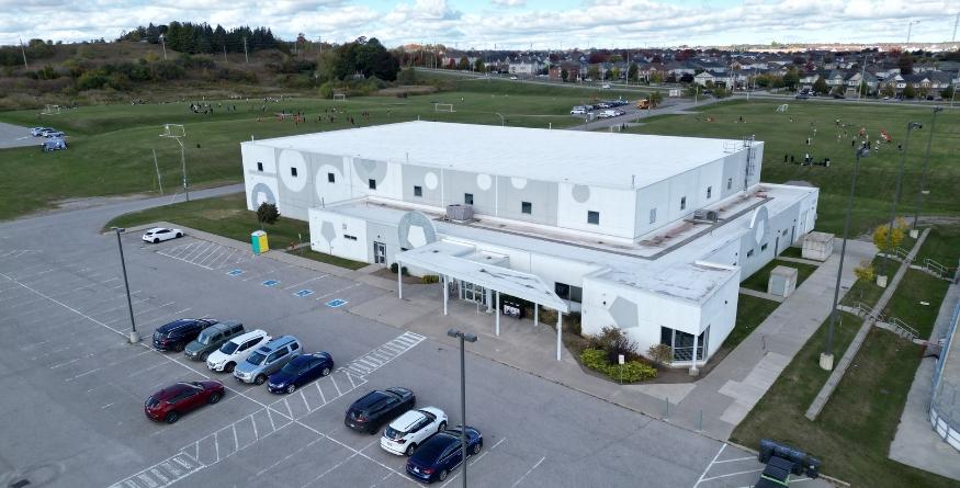 Following storm damage to nearly a quarter of its roofing system, the Bowmanville Indoor Soccer facility in Ontario, Canada, underwent a reroof in 2023. The new roof assembly is a two-layer SOPREMA system consisting of an SBS polymer-modified bitumen base sheet membrane laminated to a high-density polyiso support panel.