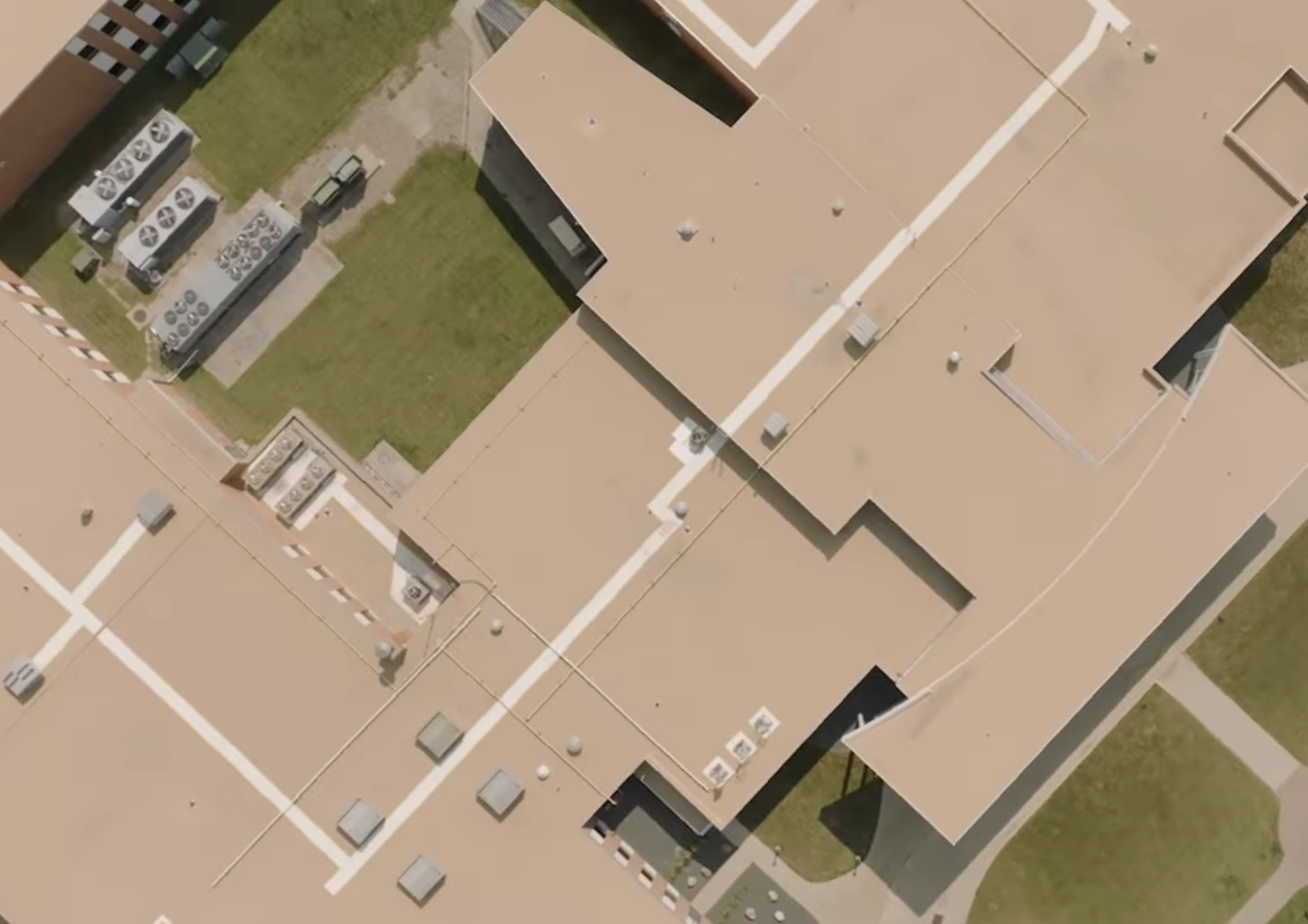 Come Monday morning, 30 guys from Duerson were on site putting tarps up on the building. Once that temporary solution was in place, it was time to plan what to do in the long term. That’s when Ryan Kinneberg, a Duro-Last manufacturer's rep through Absolute Consulting Group, came into the picture. He shared, “The ownership and those involved with the process from Grinnell Mutual, they didn't just want what was on there originally. They wanted an upgrade that would reduce the amount of damage if they had another large storm again, so it wouldn’t be so catastrophic.”